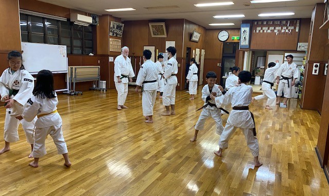 級や段の同じ者同士が組んで、各クラス別の技術修練の時間です。